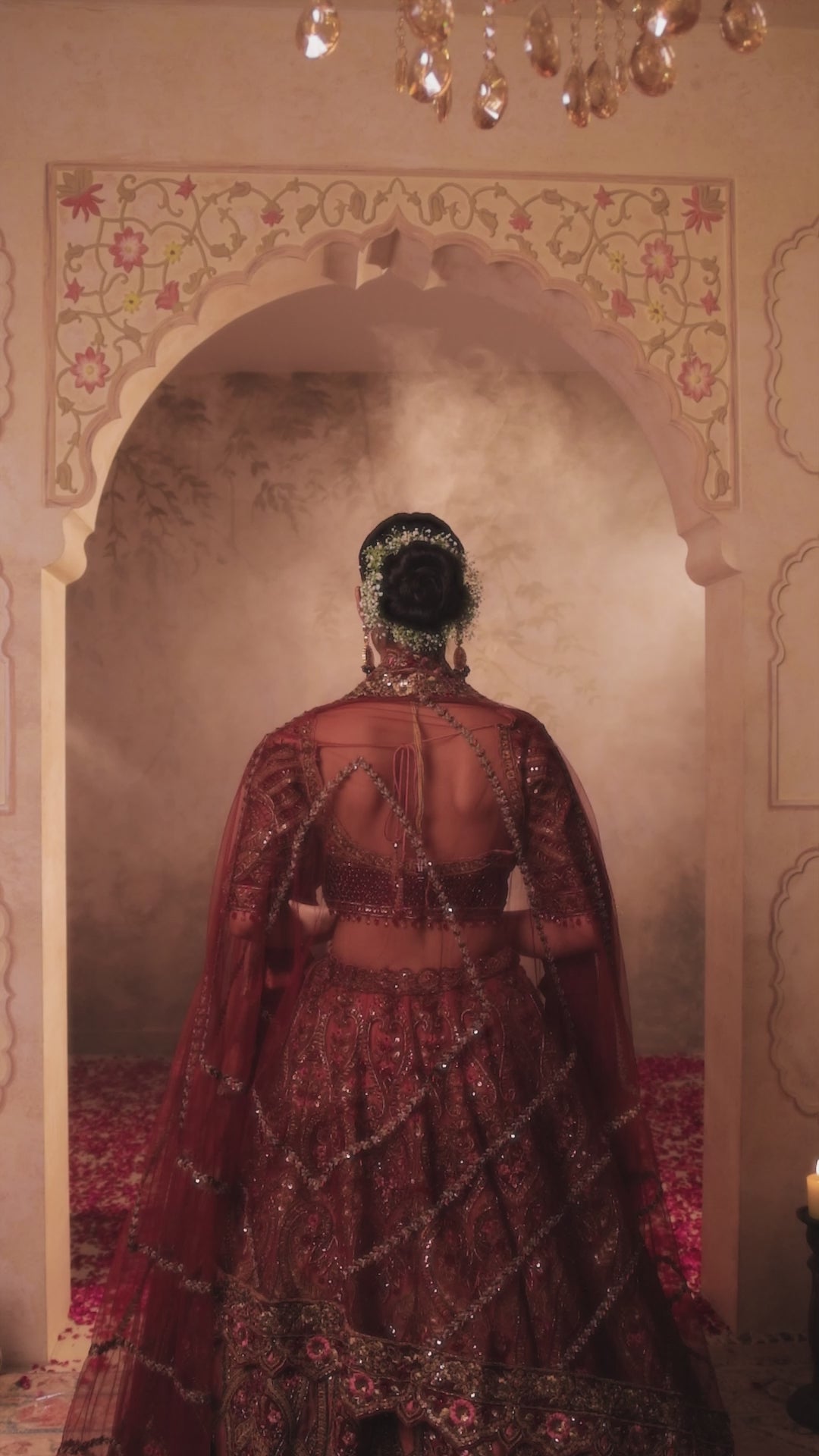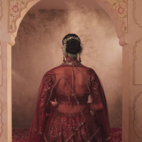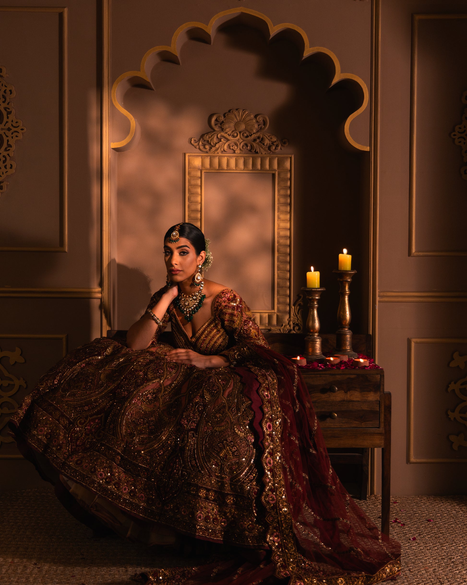 A majestic bridal lehenga that radiates timeless grandeur. The outfit
